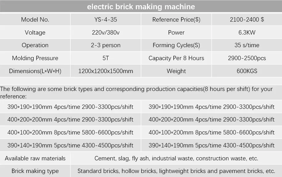 This electric brick making machine is a semi automatic cement brick making machine that utilizes a high-quality motor to form bricks through mold vibration. The electric brick making machine can utilize various waste building and industrial materials such as slag and ore slag as raw materials for brick production. The resulting bricks are solid, durable, and high-strength, without the need for sintering. This semi automatic cement brick making machine is not only environmentally friendly but also cost-effective, making it popular among many household and small to medium-sized commercial users.